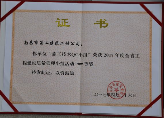 QC成果獲獎(jiǎng)證書(shū)