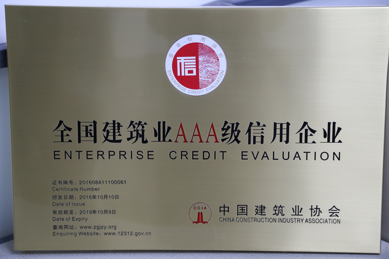 企業(yè)信用等級是由中國建筑業(yè)協(xié)會經(jīng)審核、篩選和評定而確定的,有效期3年,每年復(fù)審一次。由于公司一直本著誠信、服務(wù)、質(zhì)量為上的原則,獲得了中國建筑業(yè)協(xié)會及社會大眾的認(rèn)可,2016年10月公司再度榮獲“AAA級信用企業(yè)”的榮譽(yù)稱號。這個(gè)全國建筑行業(yè)都為數(shù)不多的榮譽(yù)是對我們企業(yè)的肯定及嘉獎,讓我們樹起信譽(yù)旗幟,再創(chuàng)輝煌,攜手走得更好、更遠(yuǎn)。